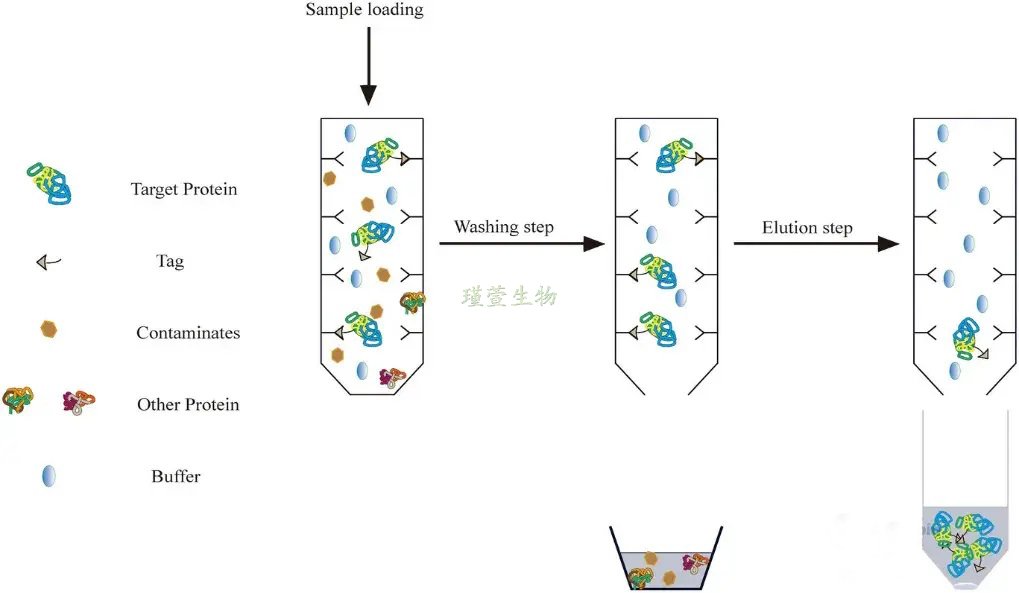 在重组蛋白纯化中,His标签因其分子量小、可灵活融合于蛋白N/C端而成为首选。该标签通过螯合过渡金属离子Ni²⁺、Co²⁺等实现亲和层析,并兼容变性与非变性条件,便于设计包含蛋白质重折叠的纯化方案(图2)。FLAG标签也广泛应用于蛋白纯化,其三重变体(3×FLAG)可有效纯化低丰度、难表达蛋白;该标签通过抗FLAG抗体结合,经游离3×FLAG肽竞争性洗脱,且下游易切除。麦芽糖结合蛋白(Maltose-binding protein, MBP)标签通过结合直链淀粉树脂实现一步纯化,洗脱时需含10 mM麦芽糖的缓冲液。此外,肝素结合(Heparin binding, HB)标签利用成纤维细胞生长因子等蛋白与肝素的天然高亲和力,通过肝素琼脂糖层析一步纯化,且结合活性不受高浓度变性剂影响[2]。