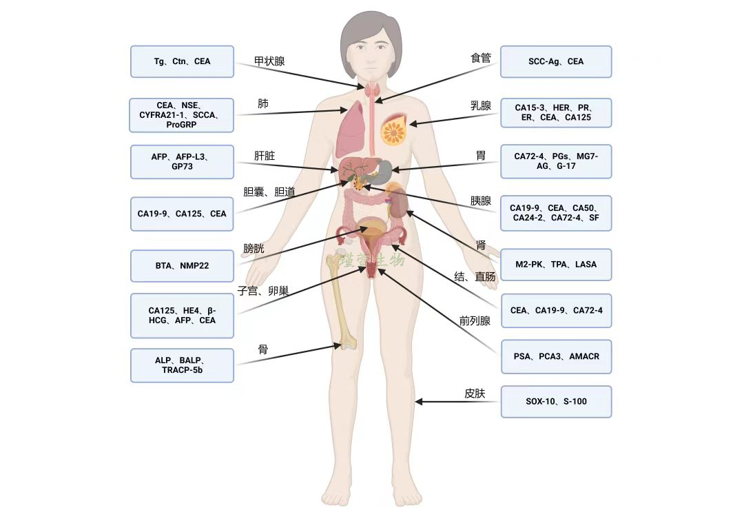 TPA是一种胚胎来源的蛋白质,广泛分布于肿瘤组织中的细胞膜和细胞器中,其在乳腺癌转移病人中的表达水平较CA15-3高达86%。